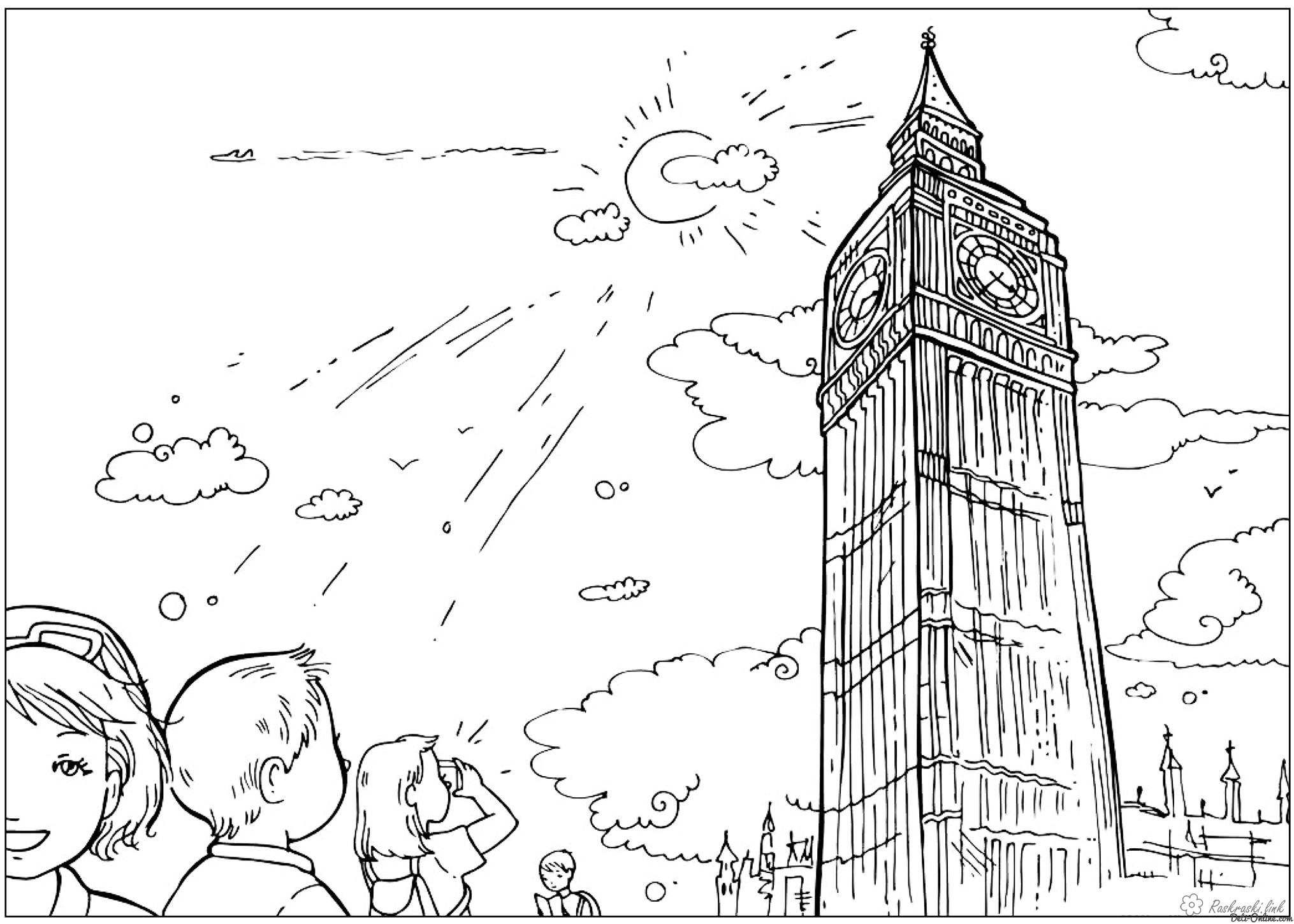 Раскраска Дитяча розфарбування, Британія пам'ятки, Біг Бен