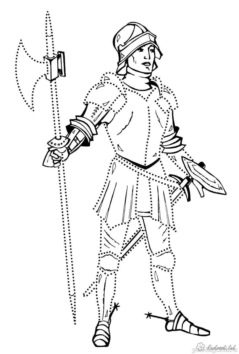Раскраска розмальовки для дітей, подорожі, Європа, чоловік, лицар
