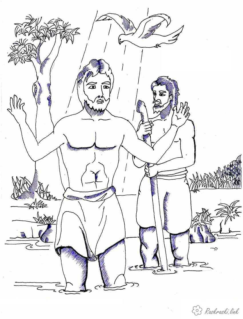 Безкоштовні розмальовки Хрещення Господнє. Роздрукувати розмальовки безкоштовно і завантажити розмальовки онлайн.