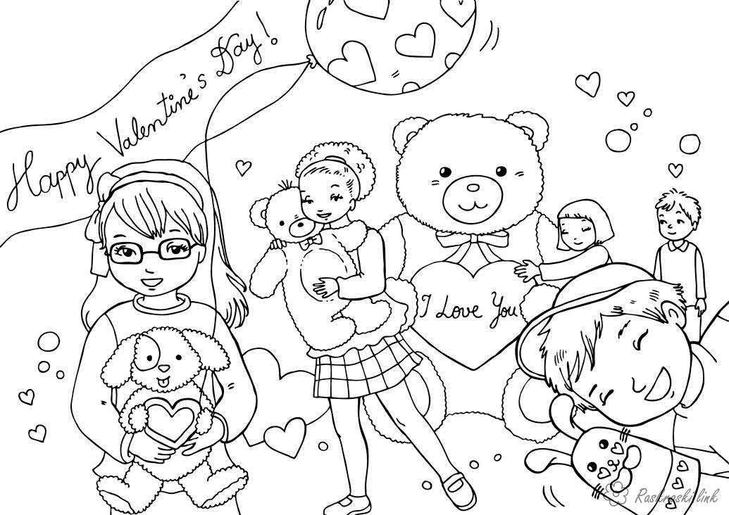 Раскраска Медведь, игрушки, дети, день святого валентина