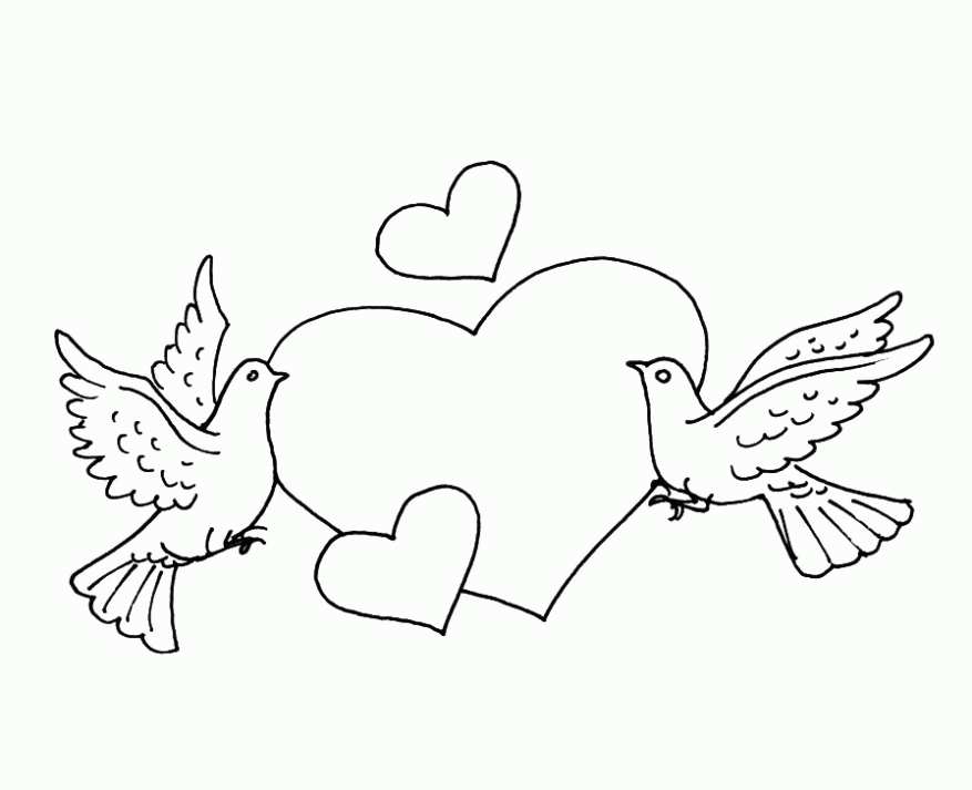 Раскраска День Святого Валентина, голуби, серце