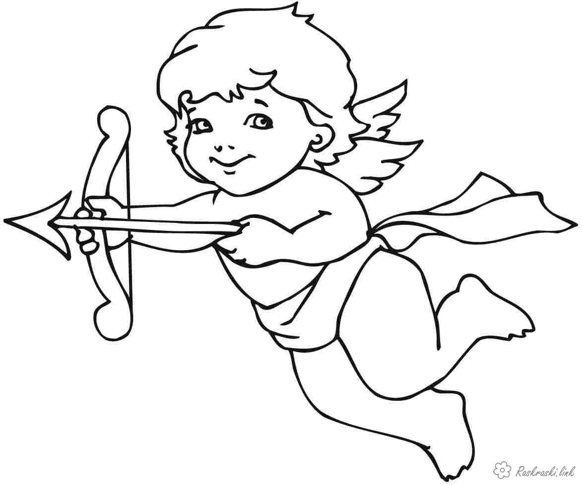 Раскраска день святого валентина, розфарбування, свята, купидон
