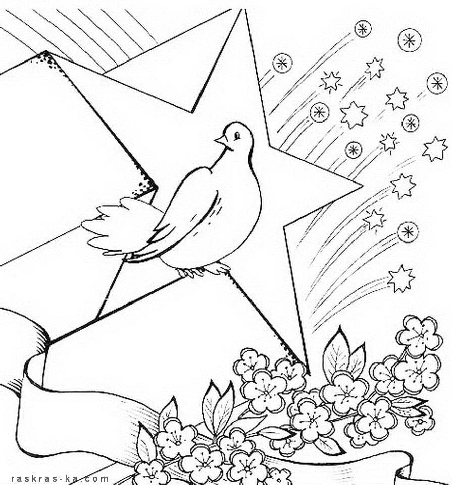 Раскраска Розмальовка, день перемоги, зірка, голуби