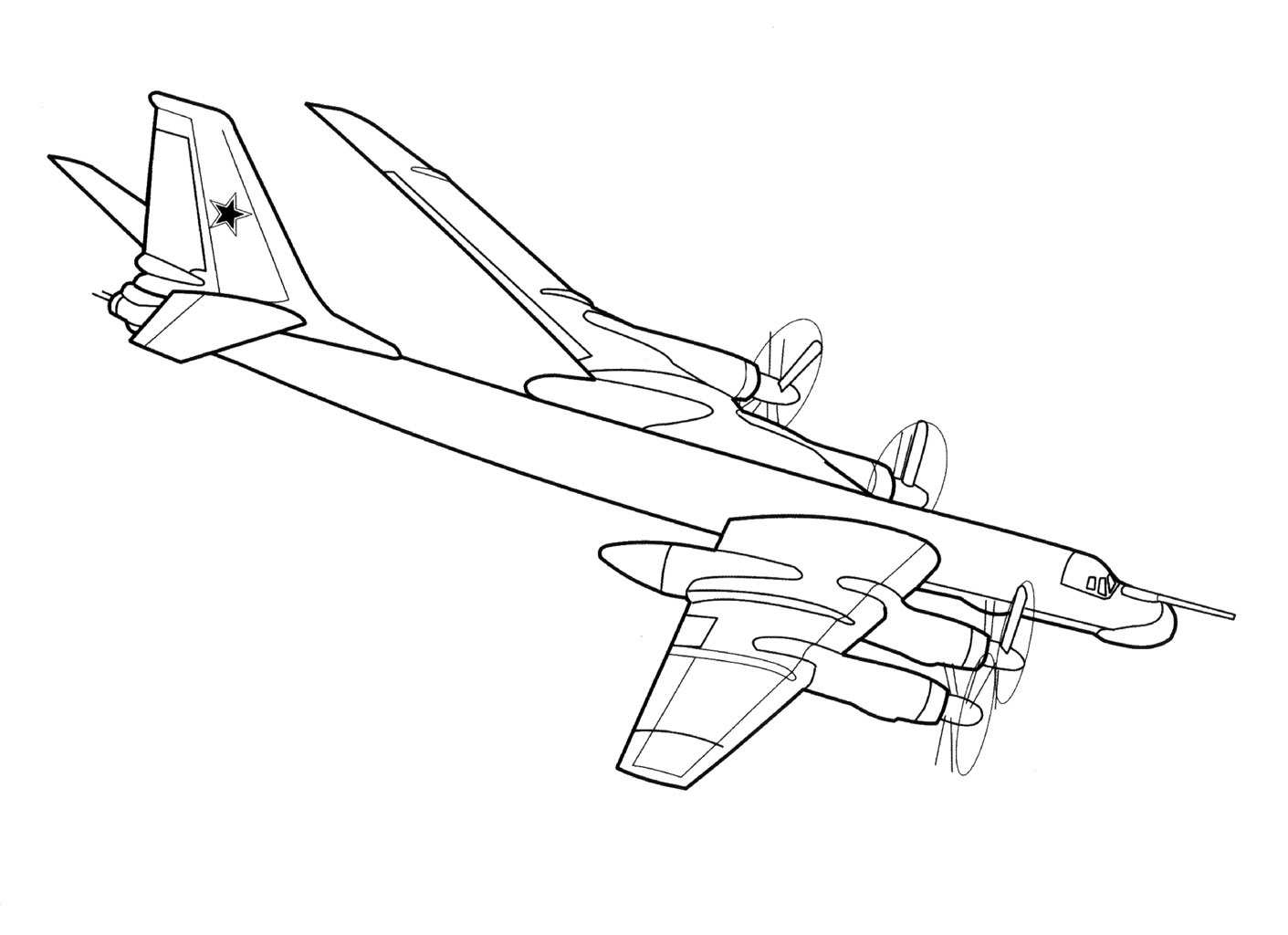 Раскраска Російський турбогвинтовий стратегічний бомбардувальник-ракетоносець, Дальня авіація Росії. Розмальовки.
