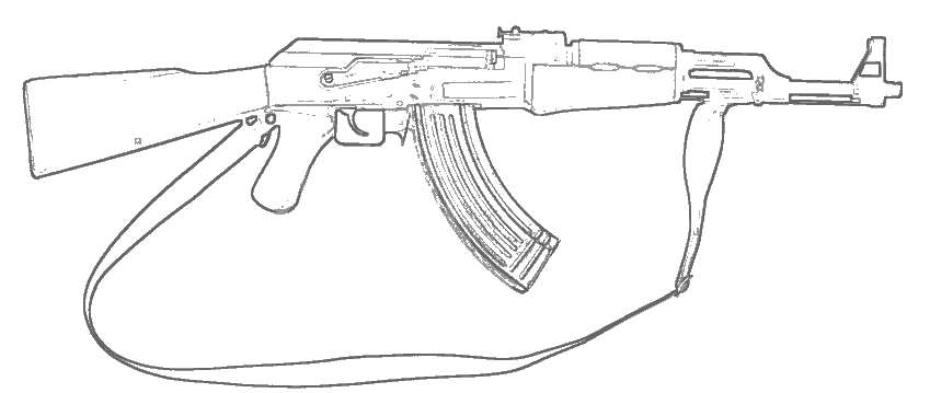 Раскраска розфарбування для хлопчиків, АК-47, зброя, автомат