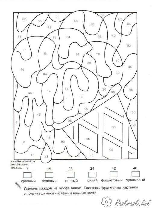 Раскраска математичні розмальовки для дошкільнят, навчальні розмальовки, розфарбуй по цифрах