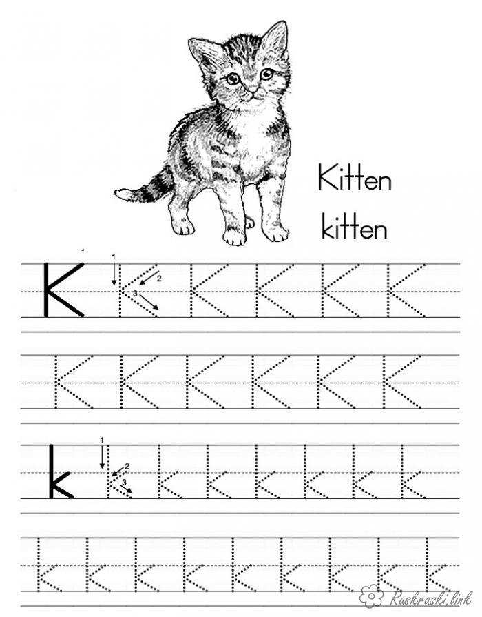 Раскраска прописи, кошеня, англійська, К