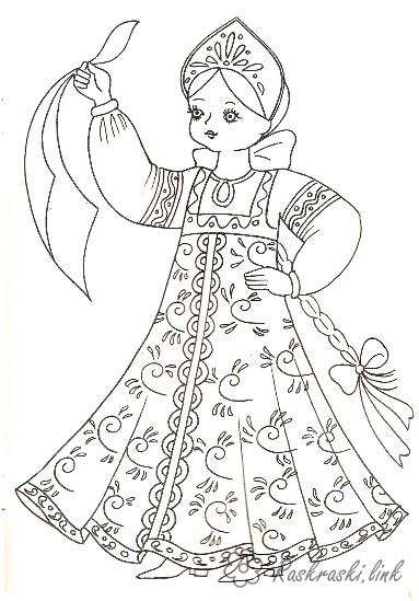 Безкоштовні розмальовки Національні костюми народів Росії. Роздрукувати розмальовки безкоштовно і завантажити розмальовки онлайн.