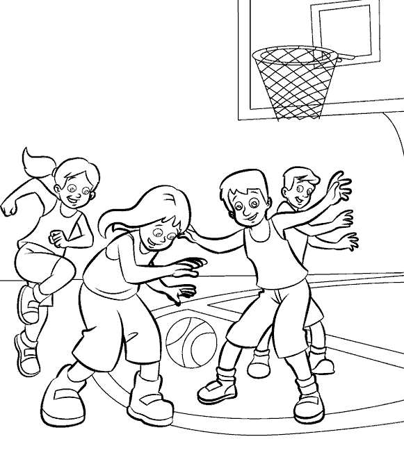 Раскраска діти грають у баскетбол розфарбування, спорт, олімпіада