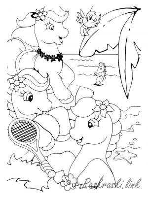 Раскраска Поні грають у теніс розфарбування, спортивні ігри