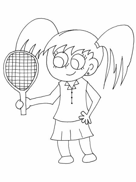 Раскраска Дівчинка з ракеткою розфарбування, спортивні ігри