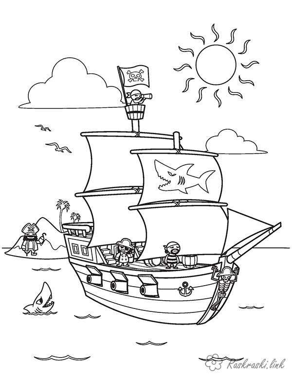 Раскраска розфарбування для хлопчиків, піратський, акула