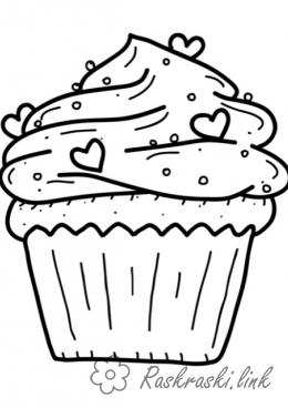 Раскраска Морозиво, кекс, присипка, розмальовки для дітей