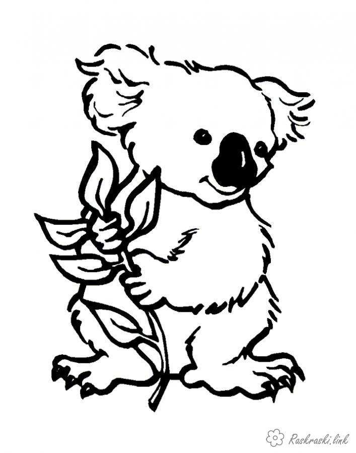 Коала. Раскраска розмальовки для дітей, тварини, коала завантажити бесплатно онлайн