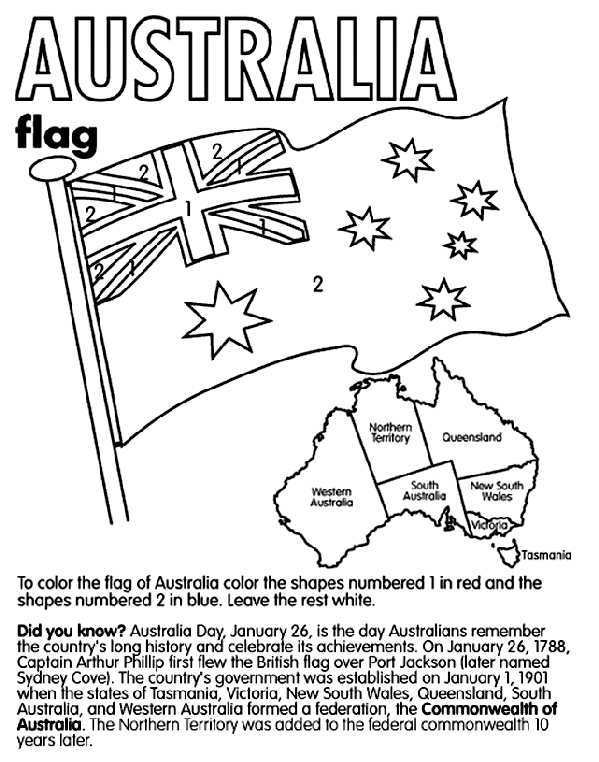 Австралія. Раскраска розмальовки для дітей, прапор, карта завантажити бесплатно онлайн