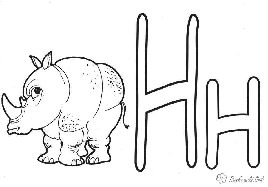 буква Н носорога . Раскраска Буква н носоріг, розфарбування, алфавіт, азбука, вчимо букви, завантажити бесплатно онлайн