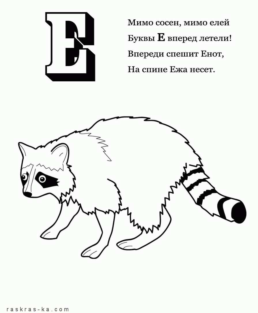 Раскраска-алфавіт "Е". Раскраска Раскраска-алфавіт, розфарбуй "Е", єнот завантажити бесплатно онлайн