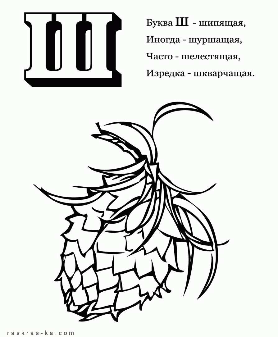 Раскраска-алфавіт "Ш". Раскраска Раскраска-алфавіт, розфарбуй букву "Ш" завантажити бесплатно онлайн