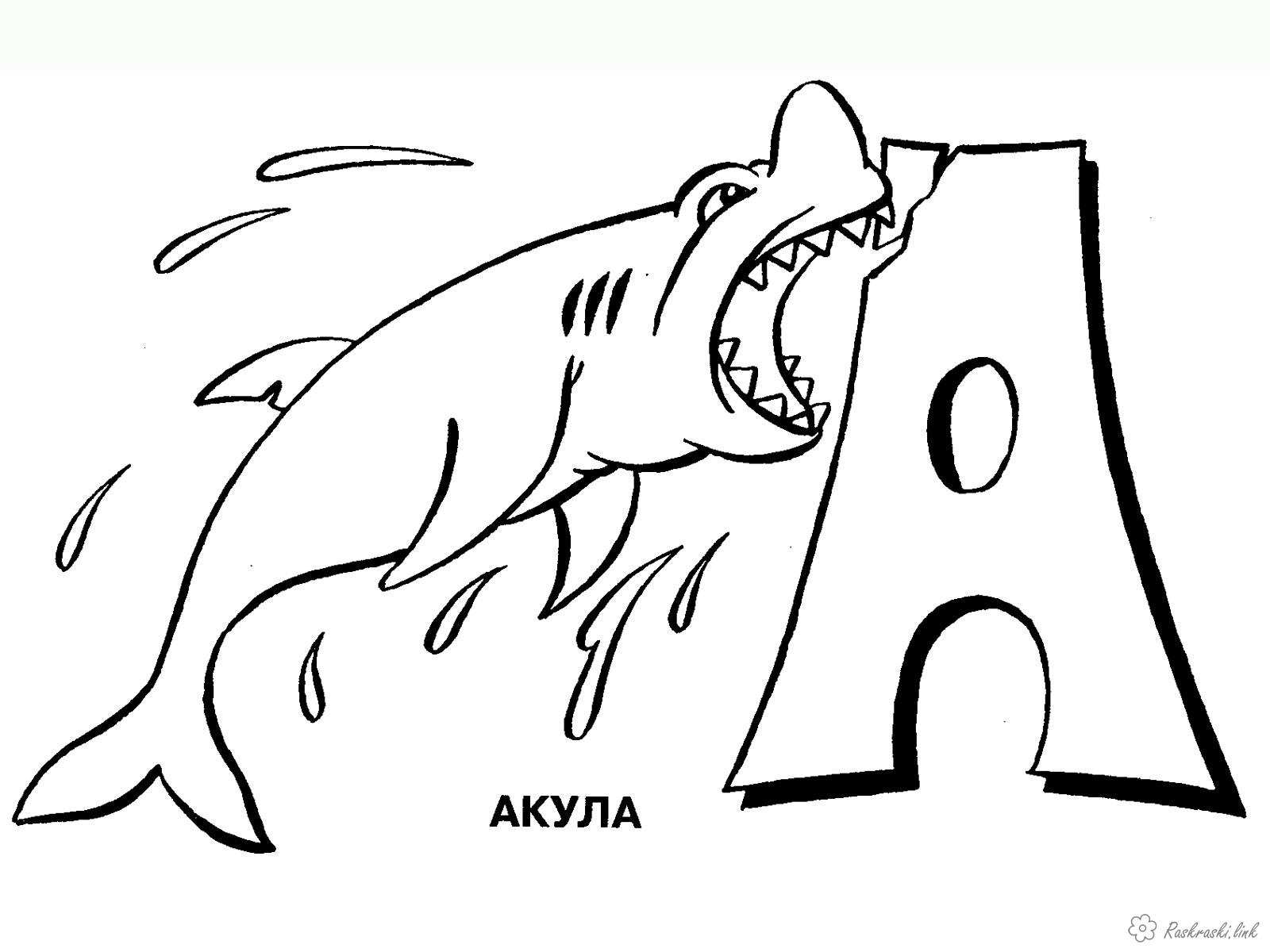 Буква а акула. Раскраска буква а акула вивчаємо букви розфарбування з алфавітом завантажити бесплатно онлайн