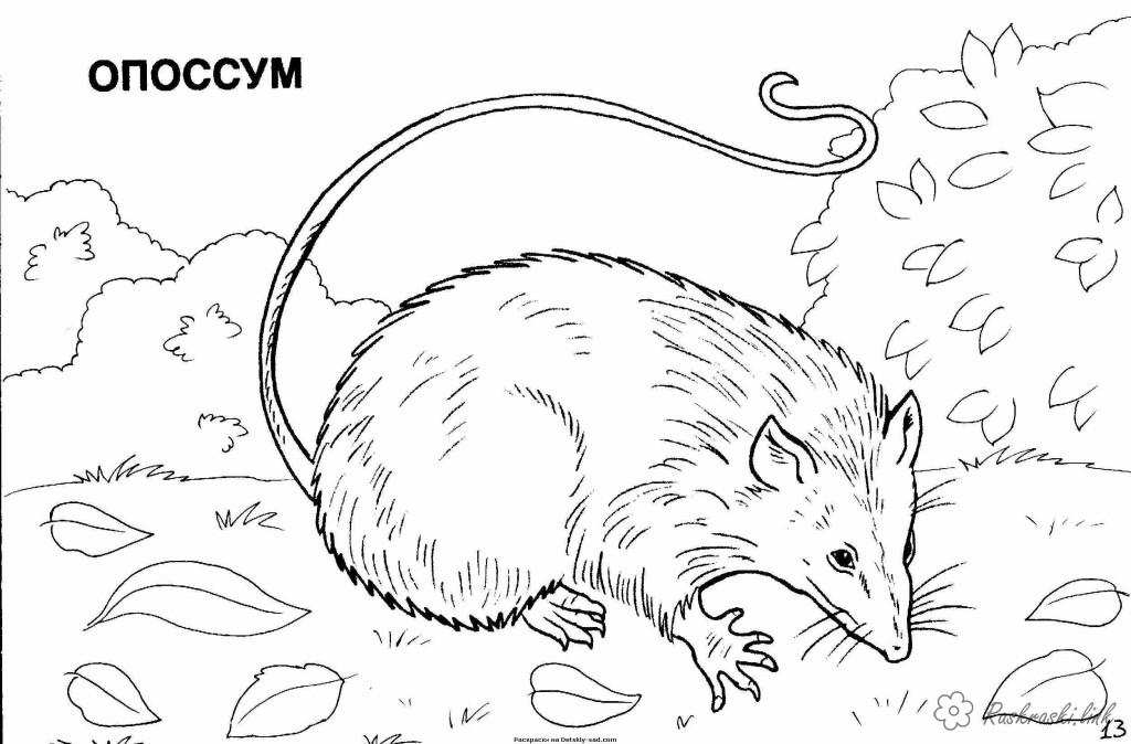 Опосум. Раскраска розмальовки для дітей, тварини, Північна Америка, опосум завантажити бесплатно онлайн