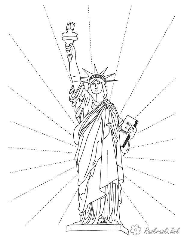 Статуя Свободи. Раскраска розмальовки для дітей, Північна Америка, статуя свободи завантажити бесплатно онлайн