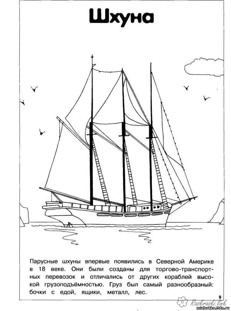Шхуна. Раскраска розмальовки для дітей, човен, Північна Америка завантажити бесплатно онлайн