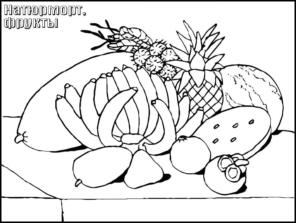 Натюрморт, фрукти, розфарбування,. Раскраска Натюрморт, фрукти, розфарбування, банани, диня завантажити бесплатно онлайн
