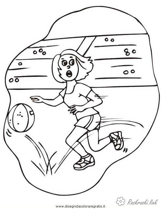 дівчина веде м'яч. Раскраска баскетбол, стадіон, м'яч, спорт завантажити бесплатно онлайн