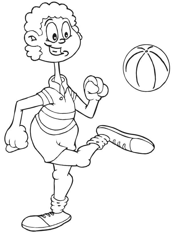 пинает баскетбольний м'яч. Раскраска баскетбол, спорт, гра, м'яч завантажити бесплатно онлайн