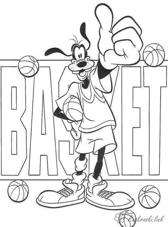 розфарбування на тему баскетбол. Раскраска баскетбол, напис, м'ячі, гуфі завантажити бесплатно онлайн