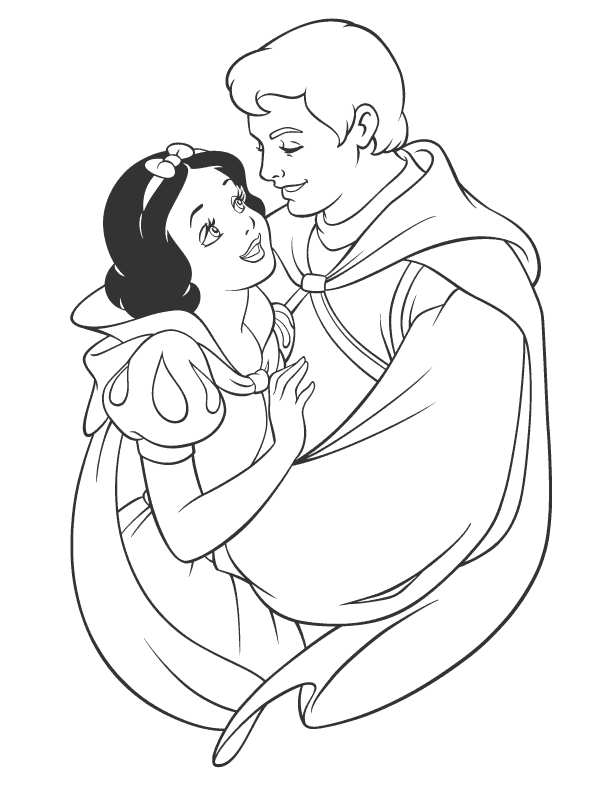Білосніжка з принцом. Раскраска принц, белоснежка, розмальовки завантажити бесплатно онлайн