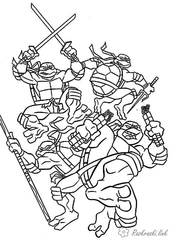 битва черепашок ніндзя. Раскраска черепашки ніндзя, розмальовки, розмальовки хлопчикам, teenage mutant ninja turtles, бій, битва завантажити бесплатно онлайн