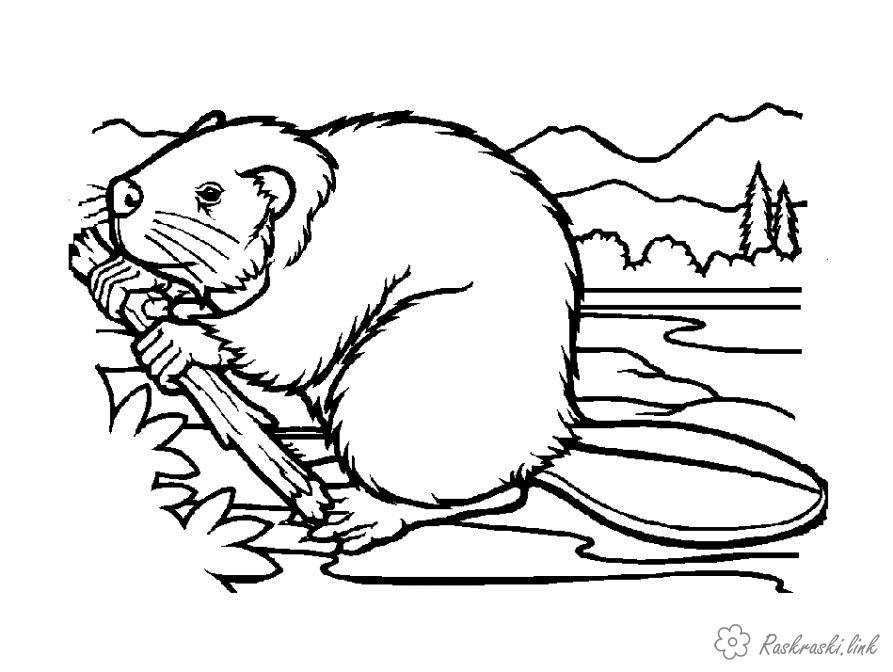 Бобр. Раскраска природа тварина лісове бобер річка завантажити бесплатно онлайн