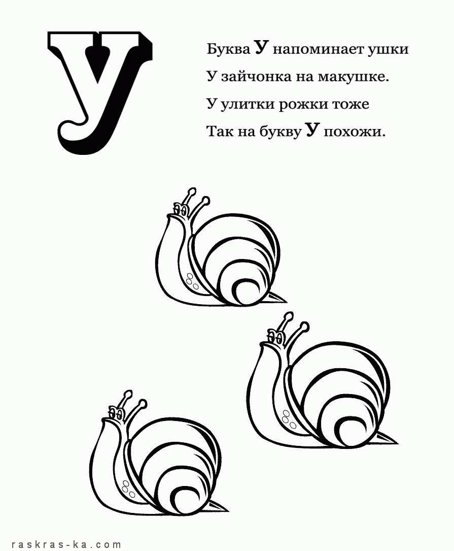 Раскраска-алфавіт "У". Раскраска Раскраска-алфавіт, розфарбуй букву "У" і равликів завантажити бесплатно онлайн