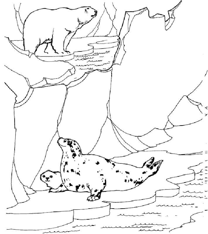 Білий ведмідь і моржі. Раскраска розмальовки для дітей, тварини, Антарктида, морж, білий ведмідь завантажити бесплатно онлайн