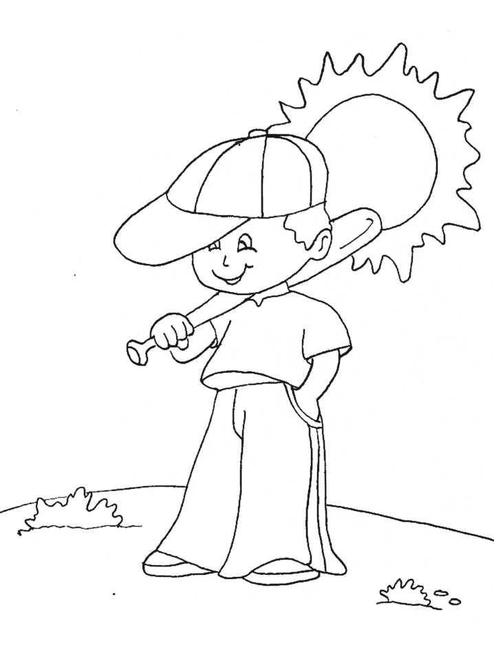 розфарбування відмінний день пограти в бейсбол. Раскраска розфарбування, сонце, хлопчик, бейсбольна біта завантажити бесплатно онлайн