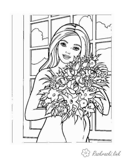 букет у вазі. Раскраска Дівчаткам, дівчинка, букет, квіти, ваза завантажити бесплатно онлайн
