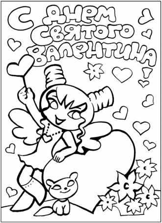 День Святого Валентина. Раскраска день святого валентина, розфарбування, свята, дівчинка, сердечко завантажити бесплатно онлайн