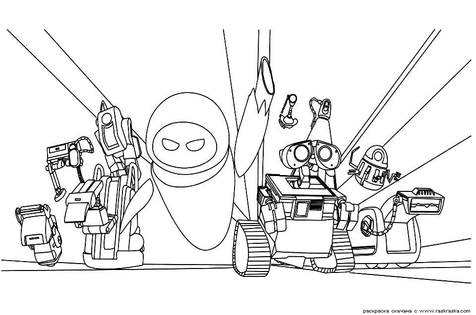ВАЛЛ-І і роботи. Раскраска ВАЛЛ-І і роботи, розфарбування для дітей завантажити бесплатно онлайн