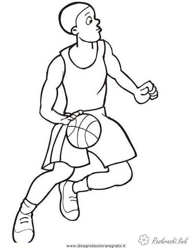 гравець веде м'яч. Раскраска баскетбол, спорт, зож завантажити бесплатно онлайн