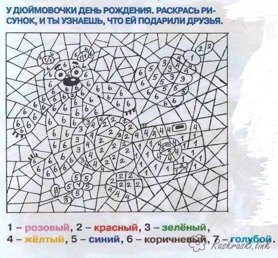 Розмальовка плюшевий ведмедик. Раскраска Математична розфарбування для дошкільнят, порахуй і розфарбуй ведмедика, плюшевий ведмедик, іграшка завантажити бесплатно онлайн