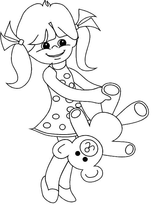 Дівчинка з ведмедиком. Раскраска дівчинка, ведмедик, розфарбування завантажити бесплатно онлайн