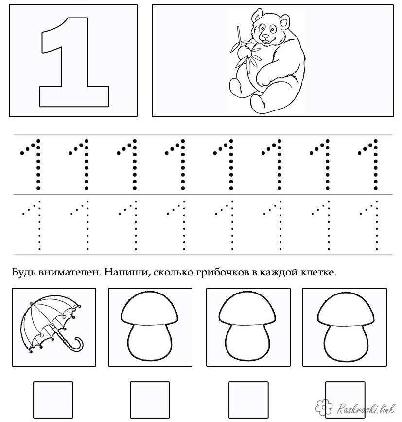 пропис цифри 1. Раскраска обведи і розфарбуй, гриби, ведмідь, парасольку завантажити бесплатно онлайн