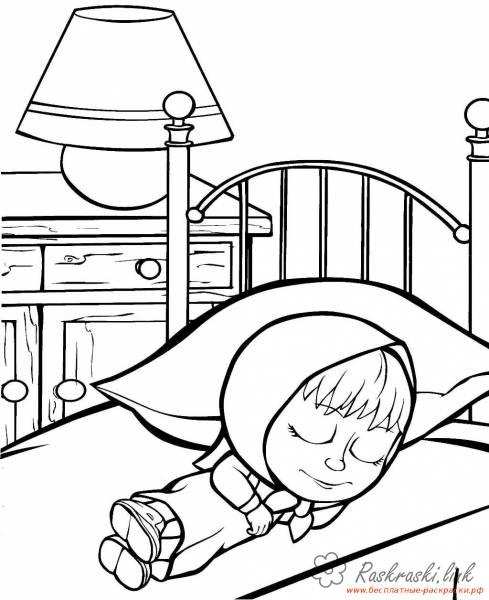 маша спить у своєму ліжечку. Раскраска маша і ведмідь, ліжечко, спить, розфарбування завантажити бесплатно онлайн