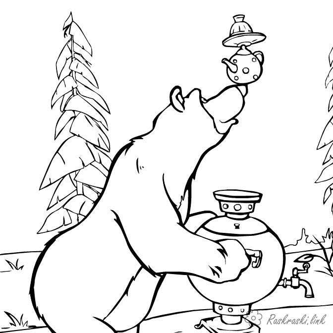 миша готує чай. Раскраска розмальовки для дітей, миша, чай, самовар завантажити бесплатно онлайн