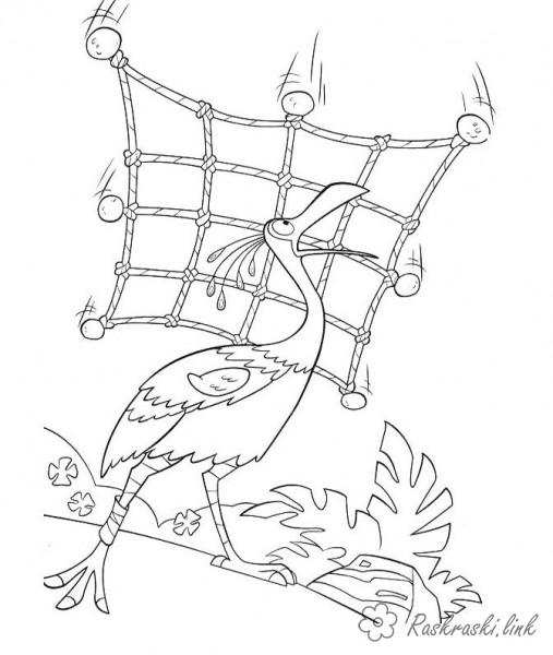 Розмальовка велика птах потрапив в мережу. Раскраска Мультфільм, Вгору, великий птах, Кевін, мережа завантажити бесплатно онлайн