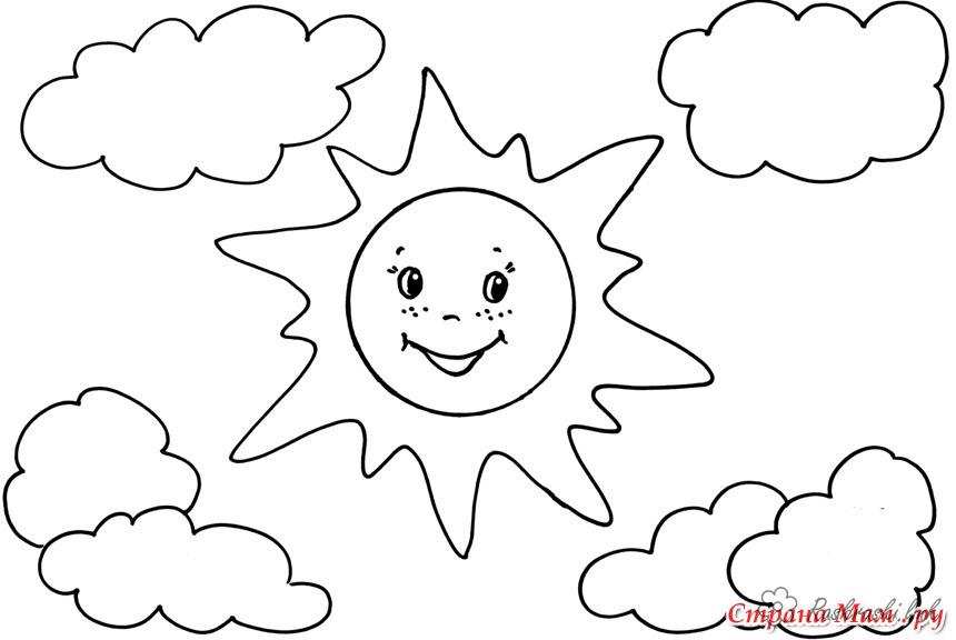 розфарбування літо сонце. Раскраска розфарбування літо веселе, сонце, дві хмари завантажити бесплатно онлайн