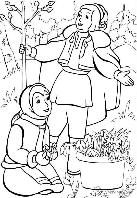 12 месяцев апрель подснежники. Раскраска 12 месяцев апрель корзина подснежники завантажити бесплатно онлайн
