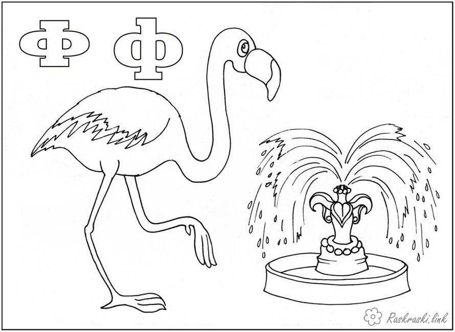 буква ф фонтан фламінго. Раскраска Буква ф фонтан фламінго вивчаємо алфавіт завантажити бесплатно онлайн