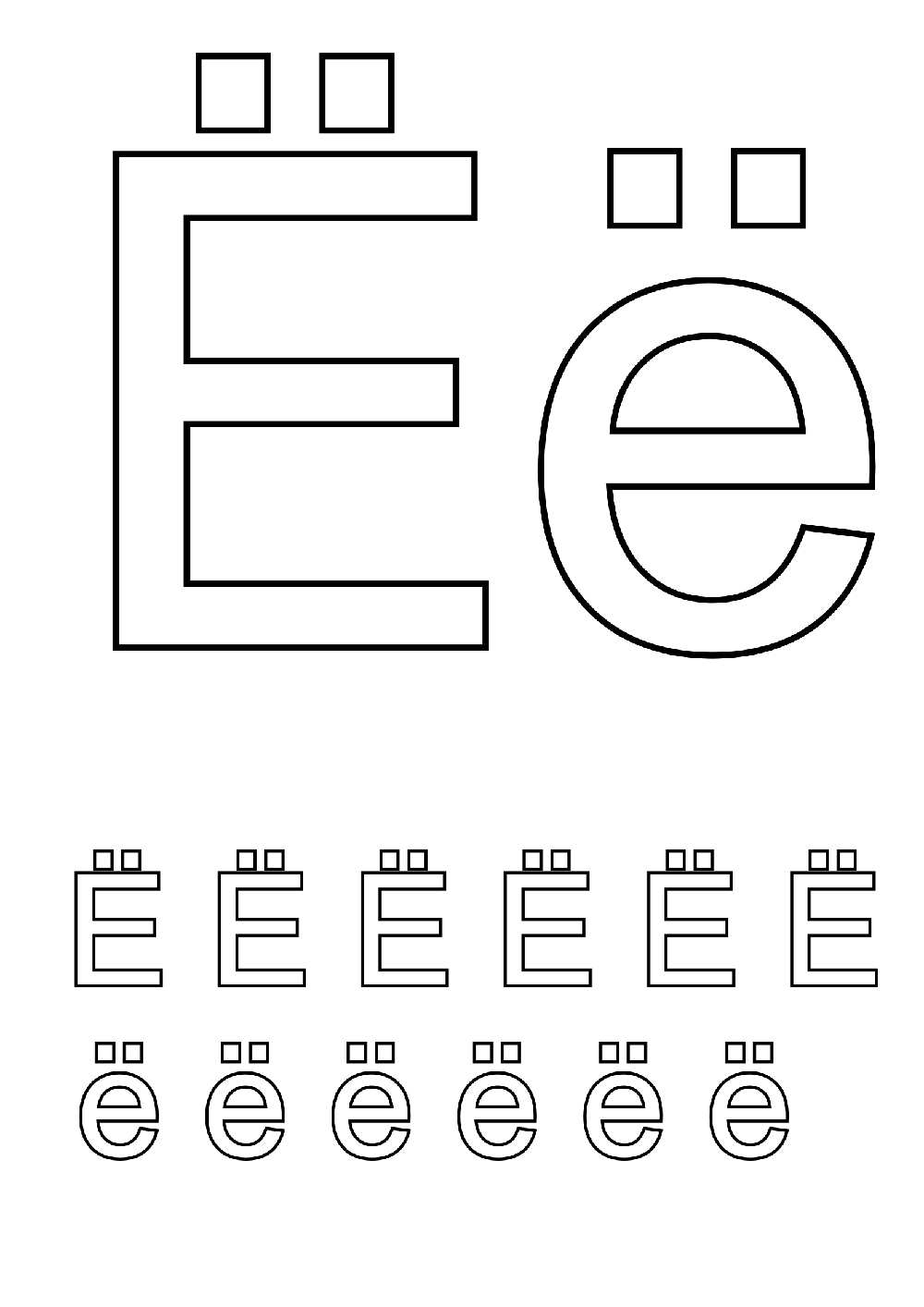 Буква Е розфарбування. Раскраска Буква Е розфарбування для дітей вивчаємо букви завантажити бесплатно онлайн